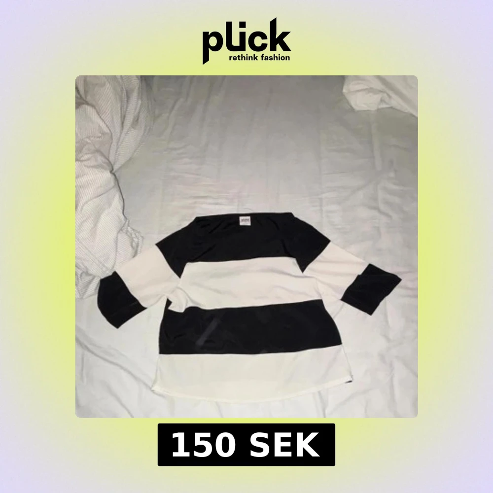 Säljer en snygg topp från Weekday med breda svarta och vita ränder. Modellen har trekvartsärm och en avslappnad passform. Perfekt för dig som gillar enkel men stilren design. Materialet känns mjukt och skönt mot huden.