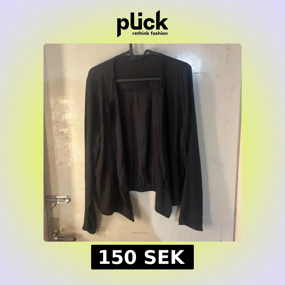 Säljer en svart, tunn och öppen cardigan med lång ärm. Koftan har en enkel och stilren design utan knappar eller dragkedja, perfekt att slänga över en topp eller t-shirt.