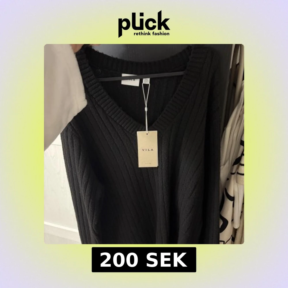 Säljer en stilren svart ribbad tröja från VILA med v-ringad hals. Perfekt för en avslappnad och trendig look. Tröjan har långa ärmar och är gjord i ett mjukt material.