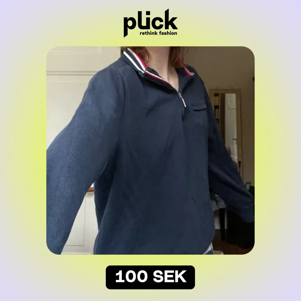 Jättefin marinblå tröja, halv zipup. Vet inte om den är vintage men ger lite den viben! Bekväm, men inte längre min stil.