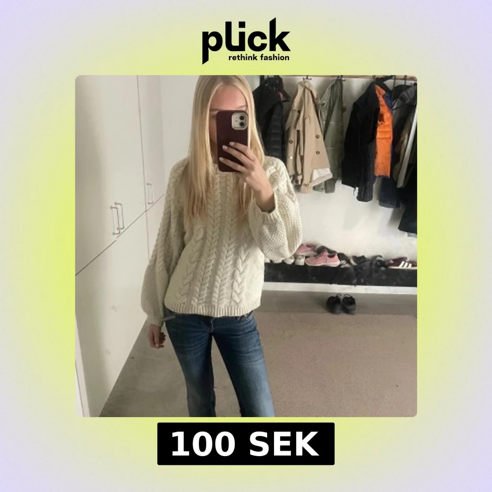 Säljer en supermysig vit stickad tröja från NA-KD i storlek XXS. Tröjan har ett snyggt flätmönster framtill som ger en cool look. Perfekt att slänga på sig när det är kyligt ute! Knappt använd.