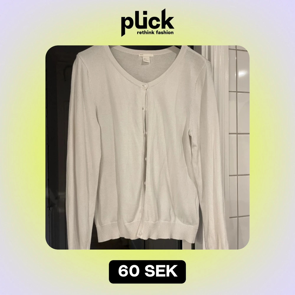 Säljer en stilren vit kofta från H&M med knappar framtill. Koftan har långa ärmar och ribbade kanter vid ärmslut och nederkant. Perfekt för lager-på-lager-stil!