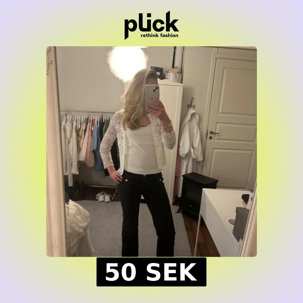 Säljer en elegant vit spetskofta med blommigt mönster. Koftan har trekvarts-ärm och en superfin design. De finns även en knapp högst upp om man vill stänga till den lite🥰 Perfekt för vår och sommar!😁Köpt på sellpy så vet tyvärr inte varumärket