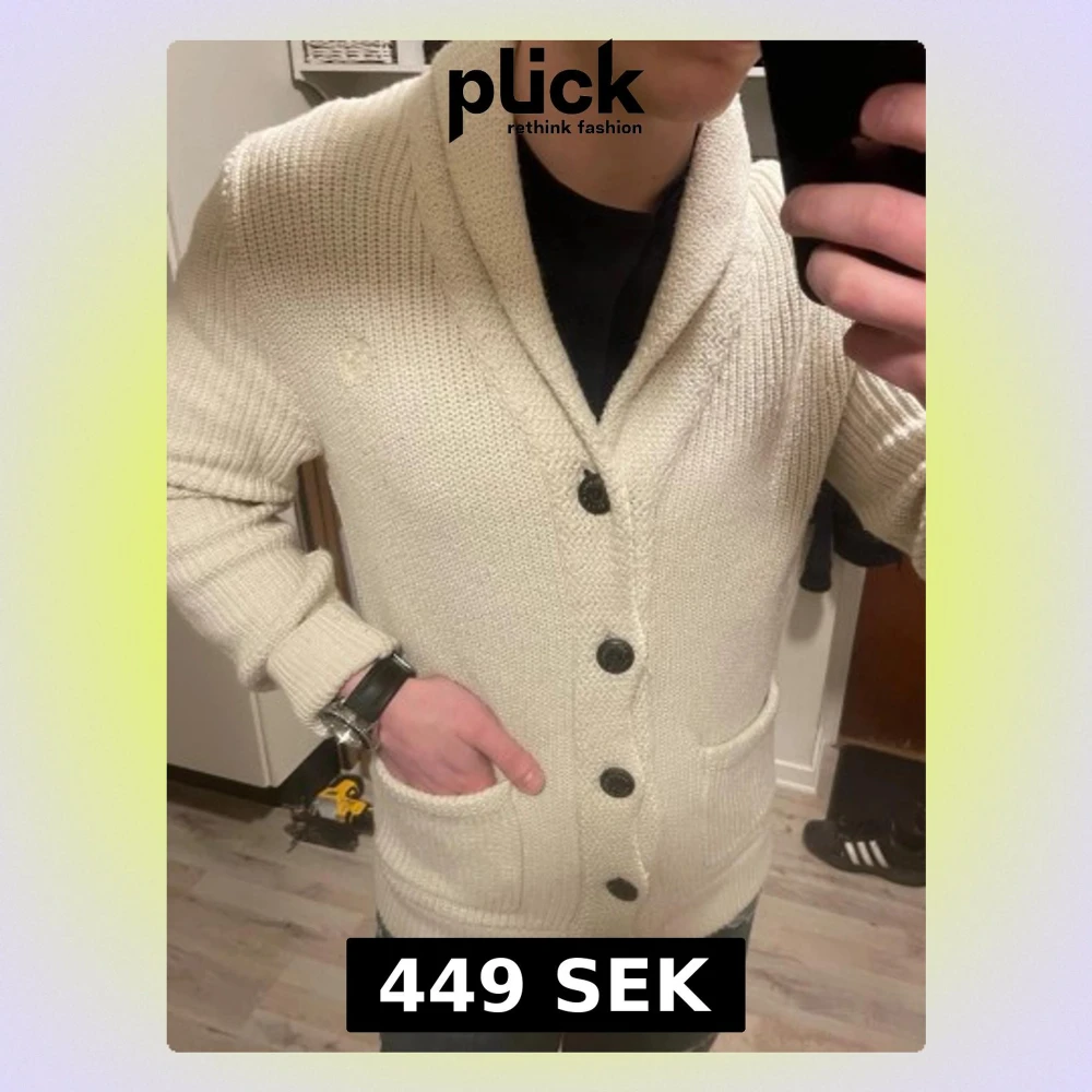 Otroligt snygg beige/vit stickad cardigan från Abercrombie & fitch. Passar perfekt till kallare väder. Modellen är 180cm, 75kg. Priset kan såklart diskuteras