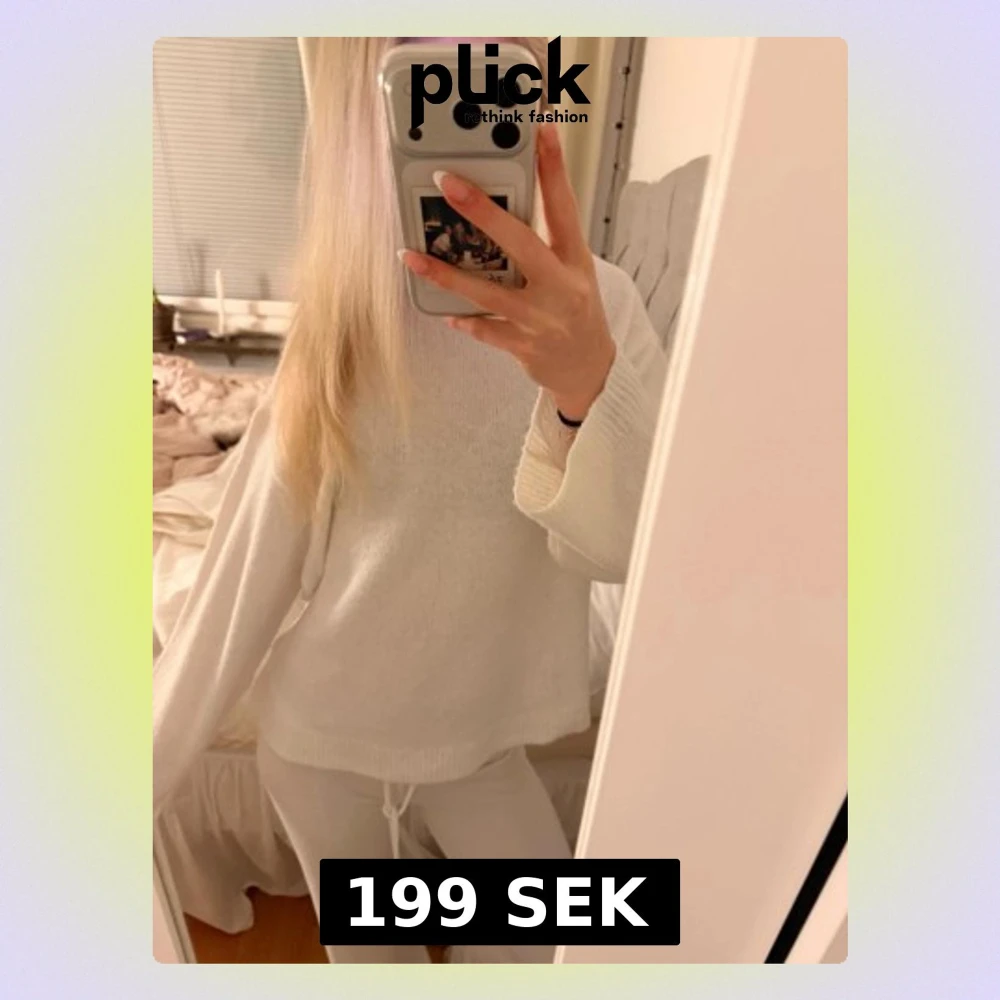 Mysig vit stickad tröja med rund hals och långa ärmar. Tröjan har en avslappnad passform och ribbade muddar vid ärmslut och nederkant. Perfekt för en chill och stilren look.