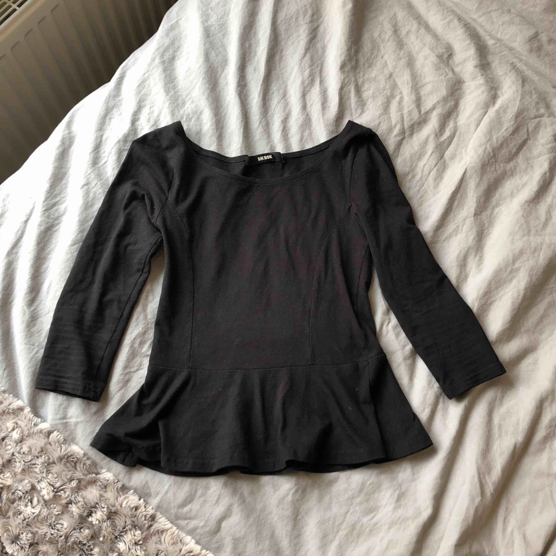 Svart tröja med volanger nedan. Pris: 20kr+ frakt