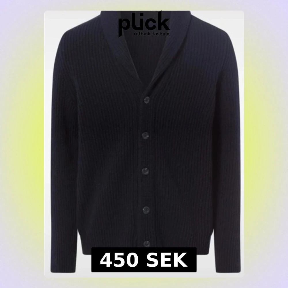 Stilren svart ribbstickad cardigan med sjalkrage och knäppning framtill. Koftan har två framfickor och långa ärmar. Perfekt för lager på lager och ger en klassisk look till din outfit.