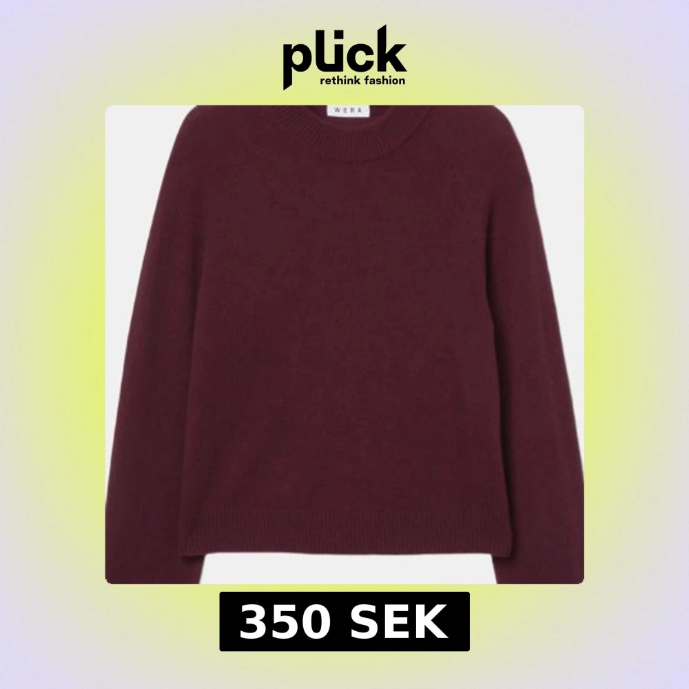 Säljer en stilren vinröd tröja från Wera. Tröjan har långa ärmar och en rund halsringning med ribbade detaljer vid ärmslut och nederkant. Perfekt för kyligare dagar.