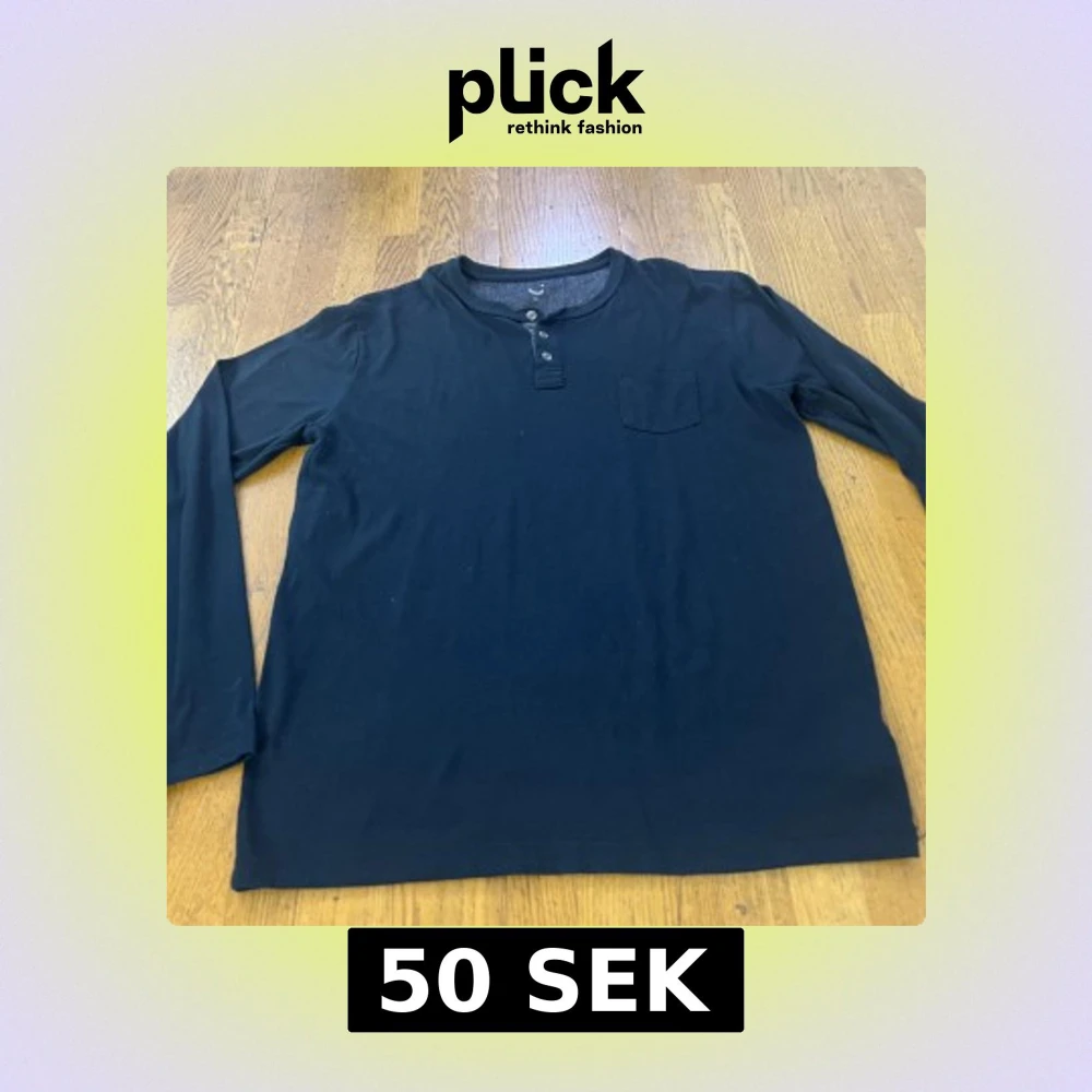Svart långärmad tröja från C i storlek XL. Tröjan har rund halsringning, tre knappar framtill och en liten bröstficka. Tillverkad i mjuk bomull, perfekt för chill dagar eller när du vill ha en enkel och stilren look.