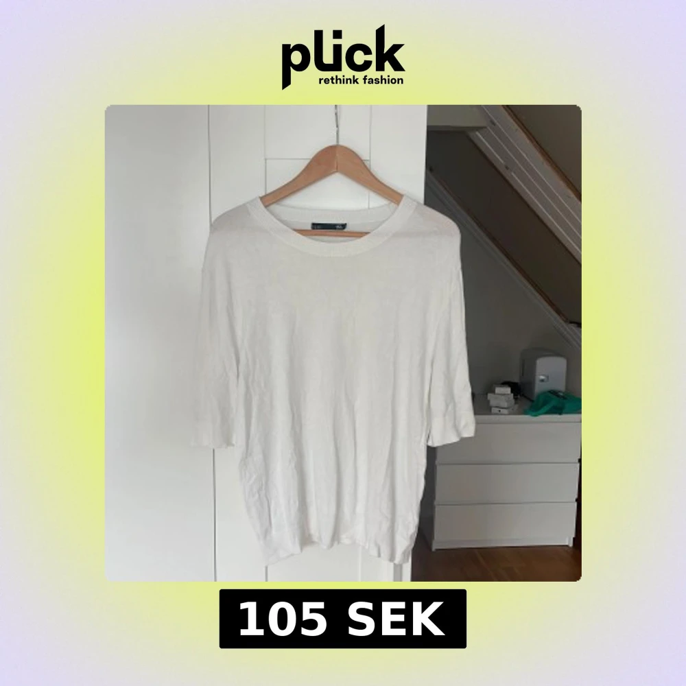 Vit, enkel och stilren kortärmad tröja från 157 i storlek XL. Tröjan har rund halsringning och är tillverkad i en mjuk blandning av viskos och nylon. Perfekt för dig som gillar en clean och avslappnad look. 50 + frakt pris kan diskuteras