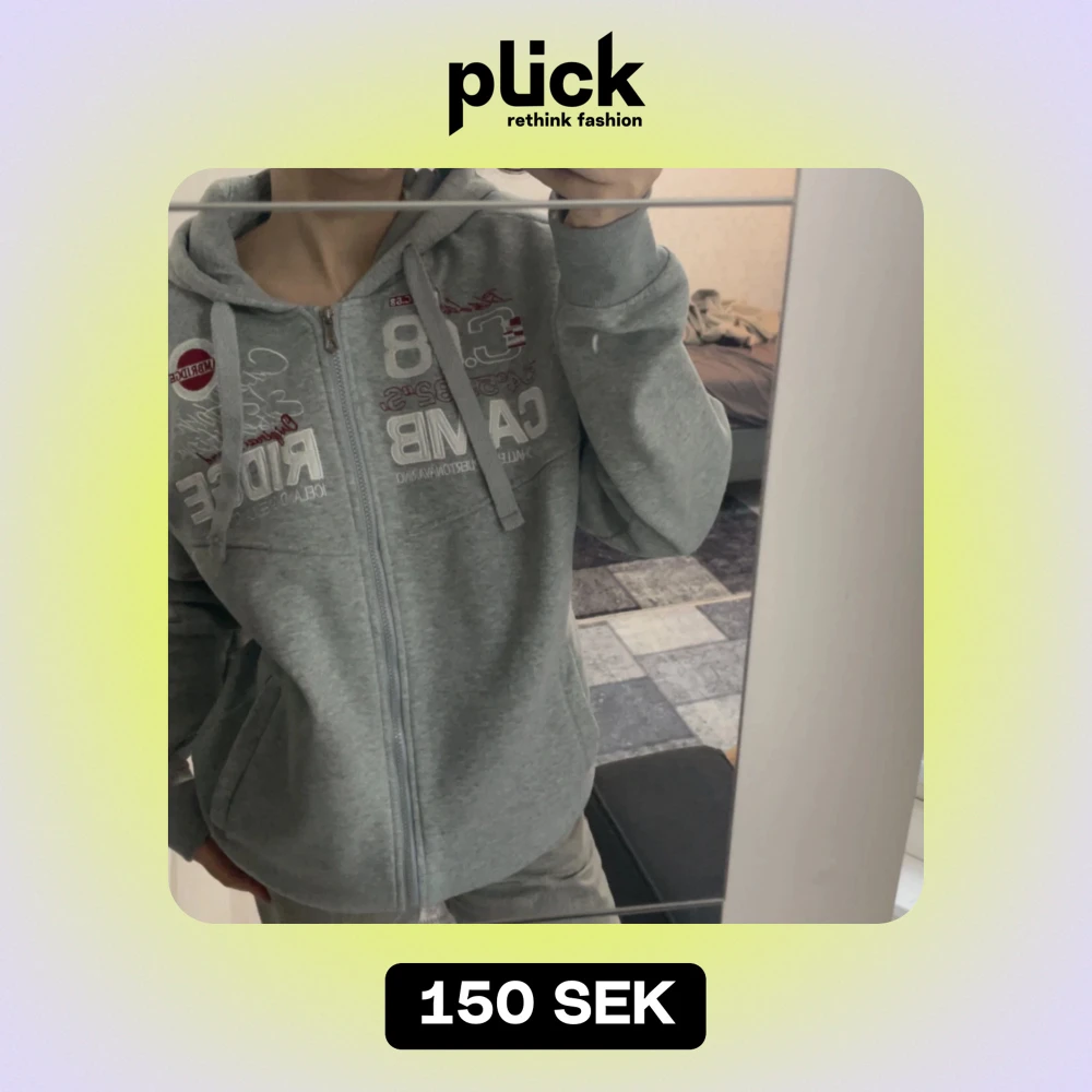 Säljer en grå hoodie med dragkedja och tryck på bröstet. Den är använd ett par gånger men är i väldigt bra skick. Den är jättefin och oversize på mig.