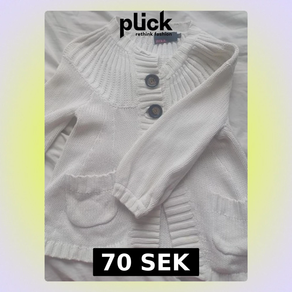 Gullig vit stickad kofta med stora knappar