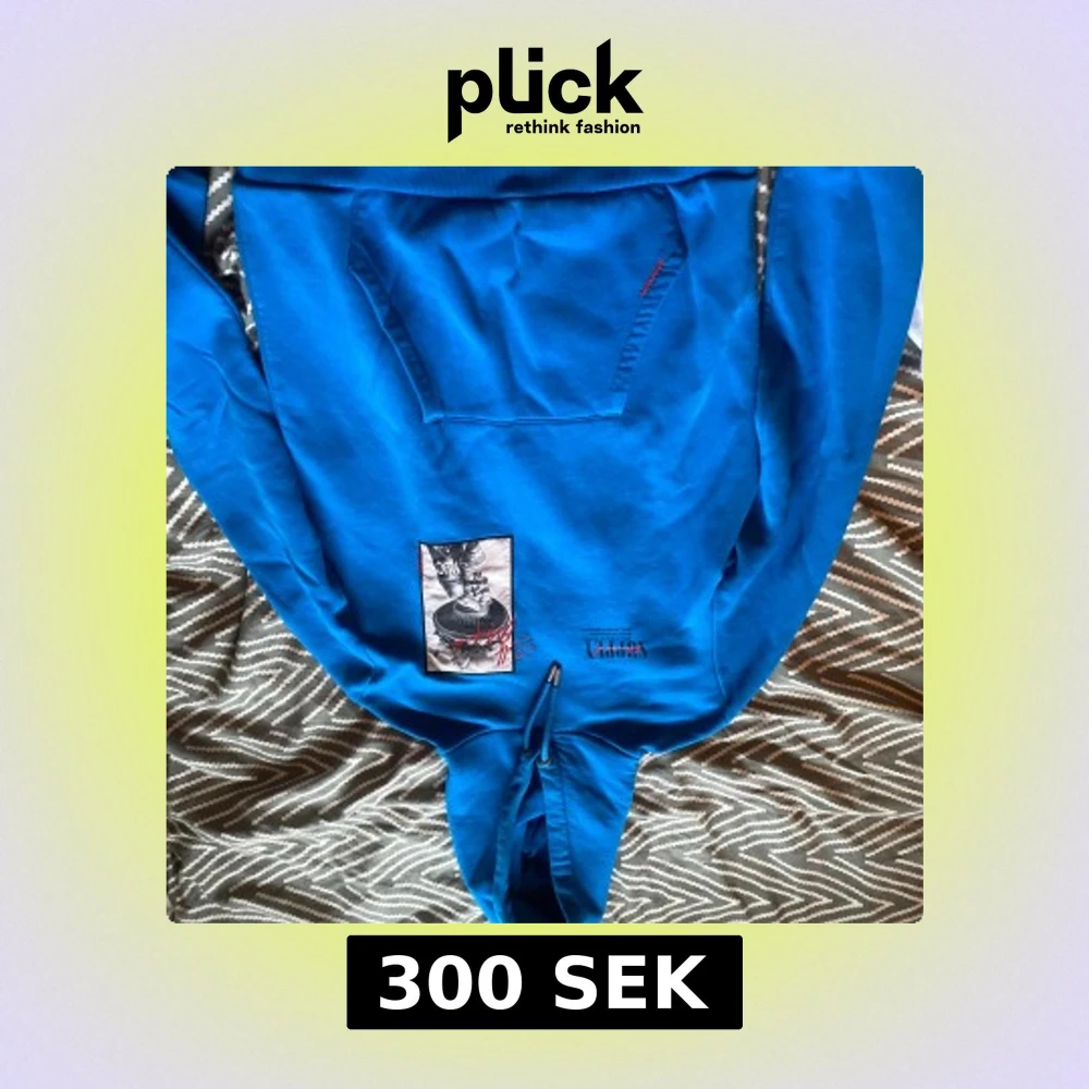 Snygg blå hoodie från Supply & Demand i storlek XS. Tröjan har huva med dragsko, magficka och coolt tryck framtill med svartvitt motiv och röd text. Tillverkad i mjuk bomullsmix, perfekt för chill eller streetstyle. Passar Även Som S och kanske M