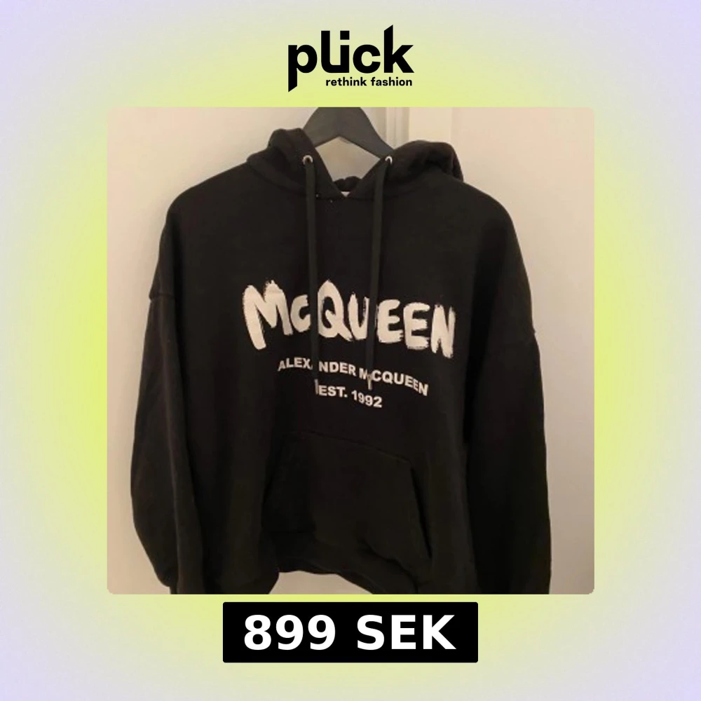 Säljer en svart hoodie från Alexander McQueen med sjukt fet design. Passar dig som har storlek XS eller är ungefär 160-165. Säljer för endast 999, kan gå ner i pris vid snabb affär.