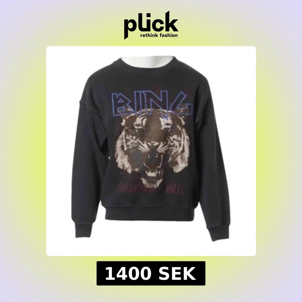 Cool svart sweatshirt från Anine Bing med stort tigertryck och blå text framtill.