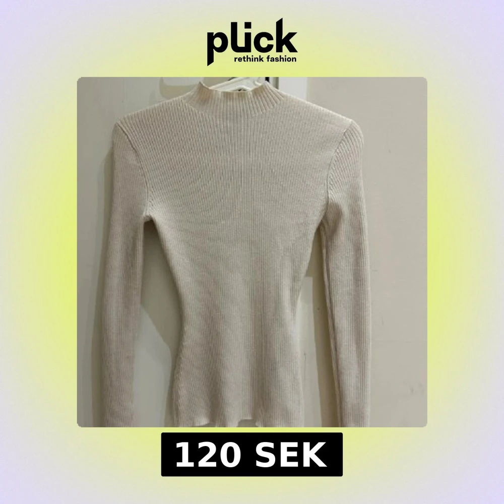 Säljer en beige ribbad polotröja med lång ärm och hög hals. Tröjan är figurnära och har en stilren, enkel design som passar perfekt till lager-på-lager. Materialet är mjukt och stretchigt för en bekväm känsla.