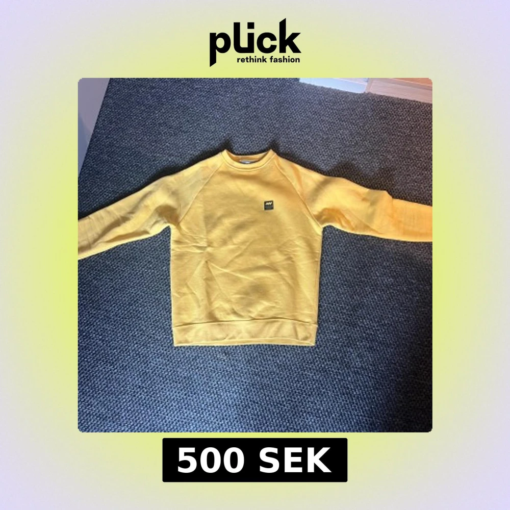 Säljer en gul sweatshirt från Mountain Works i storlek XS. Tröjan har rund hals, långa ärmar och en liten logga på bröstet. Mjuk insida och klassisk passform, perfekt för dig som gillar enkel och stilren design.