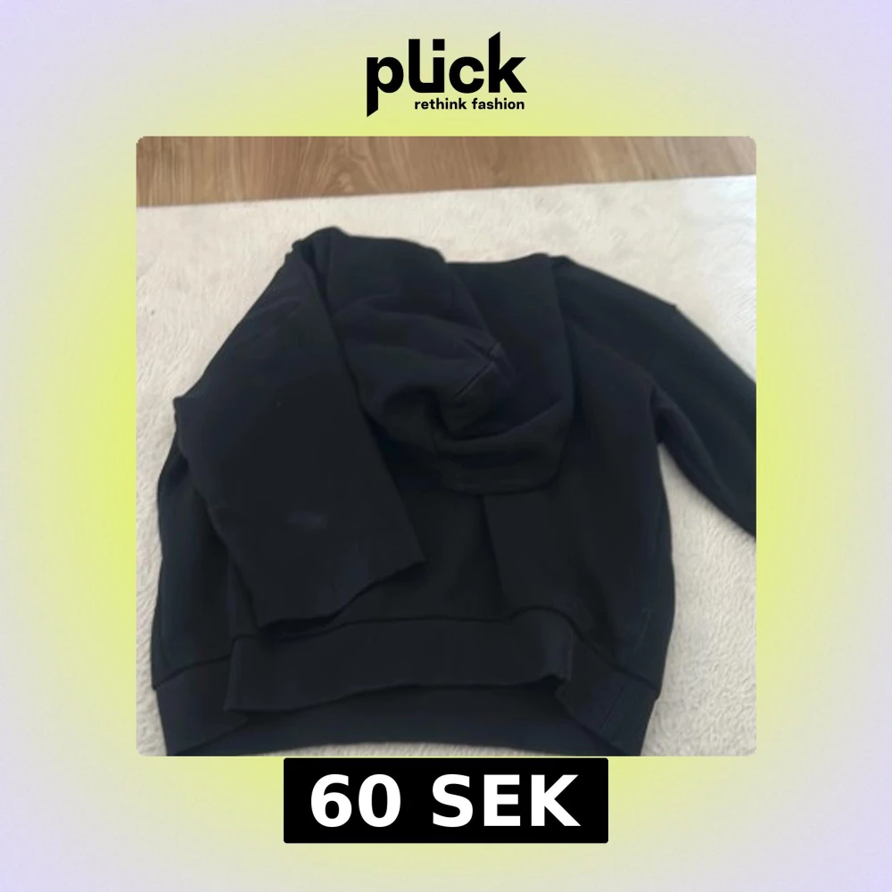 Säljer en svart hoodie med klassisk huva och tre kvarts ärmar. Tröjan har ribbade muddar vid ärmslut och nederkant, vilket ger en snygg och bekväm passform. Perfekt för chill dagar eller när du vill ha en enkel och stilren look.