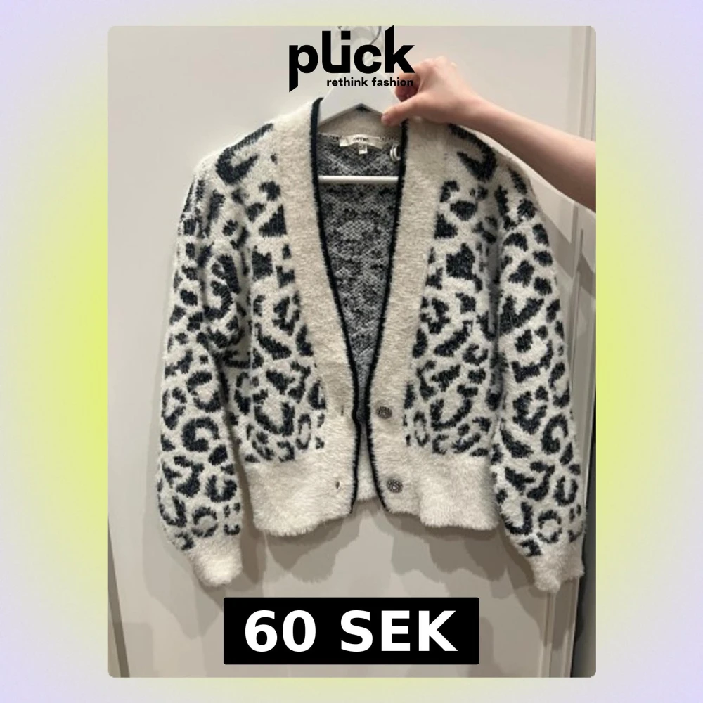 Fluffig kofta från Koton med svartvitt leopardmönster. Koftan har djup V-ringning, två knappar framtill och ribbade muddar. Perfekt för dig som vill ha en mysig och trendig look med lite extra attityd.