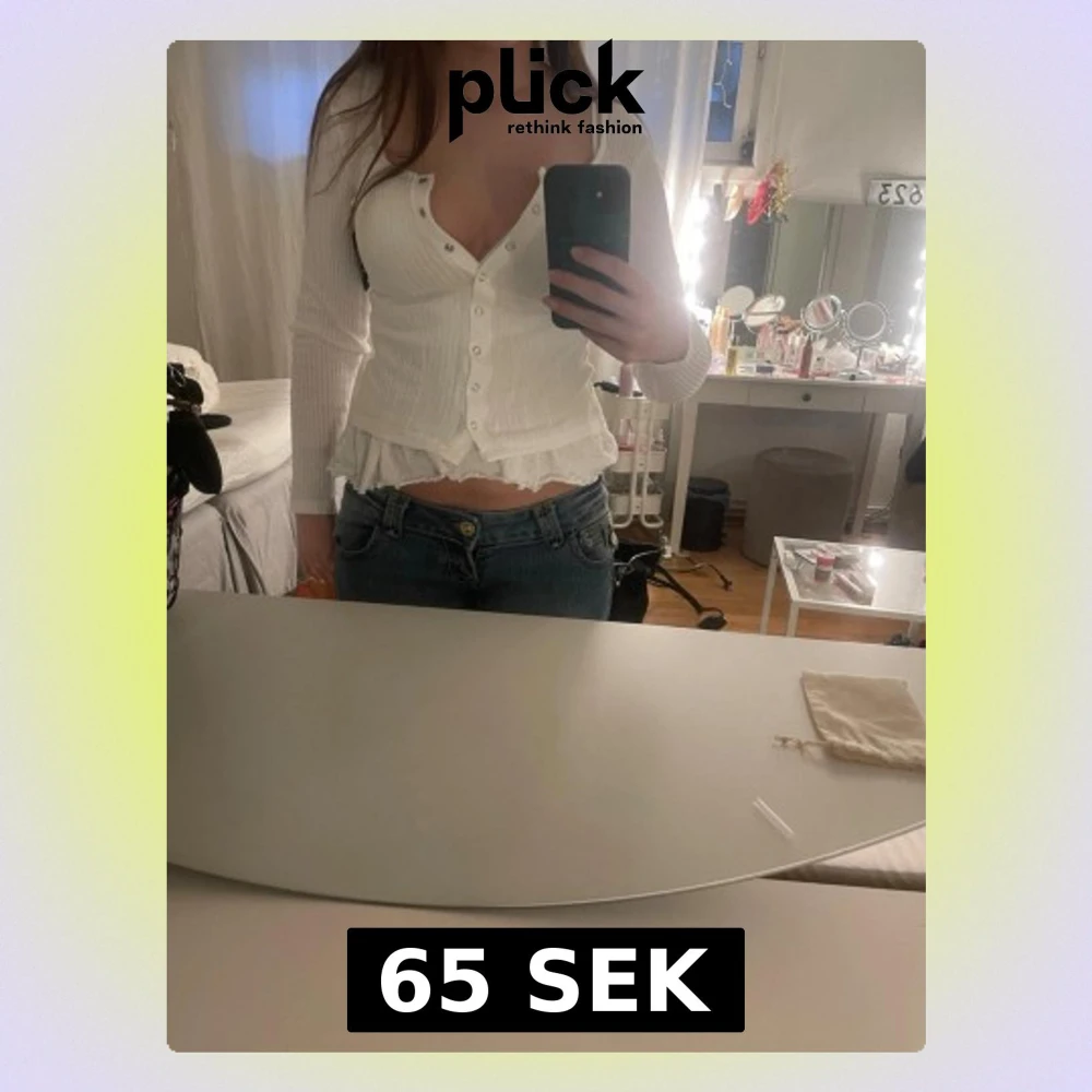 Vit ribbad topp från NLY Trend i storlek XS. Modellen har långa ärmar, v-ringning och silverfärgade knappar framtill. Tunt och stretchigt material som sitter snyggt på kroppen.