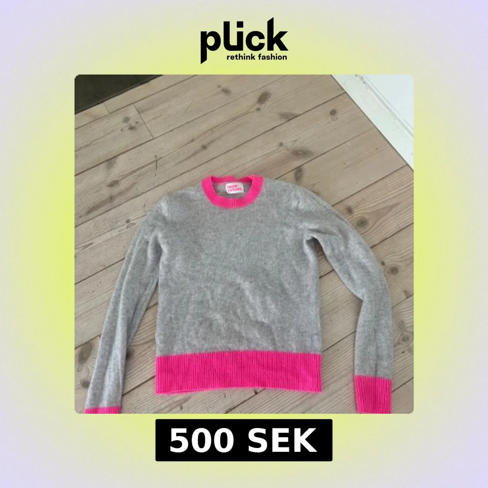 Supermjuk grå stickad tröja från FROM FUTURE med ribbade rosa detaljer vid hals, ärmslut och nederkant. Perfekt för dig som vill ha en färgklick i garderoben! Klassisk passform och långärmad modell.