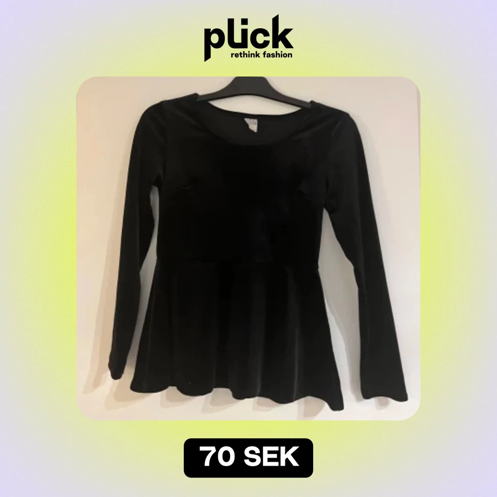 En fin topp av sammet. Med en volang som går neråt från naveln. Svart 🫶🏻