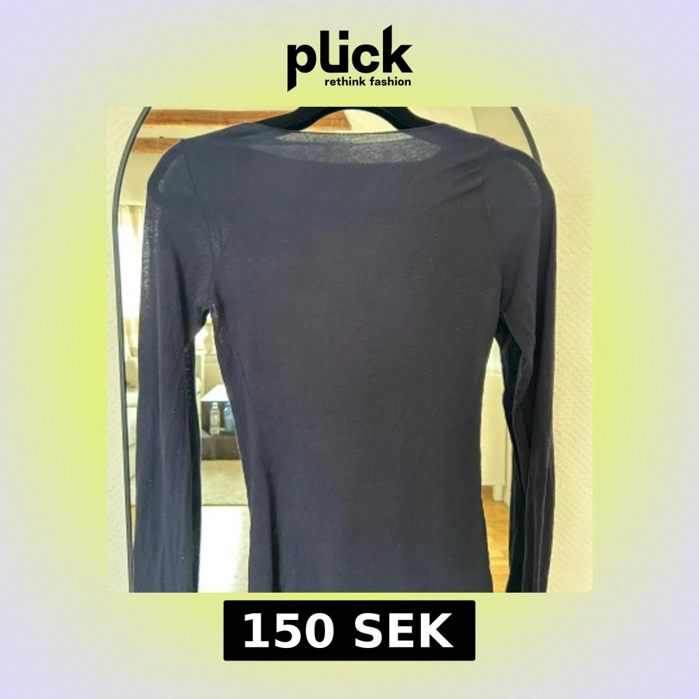 En enkel och stilren mörkblå långärmad tröja i tunnare material. Tröjan har en rund halsringning och sitter figurnära, perfekt att matcha med jeans eller kjol. Passar dig som gillar en clean och klassisk look.