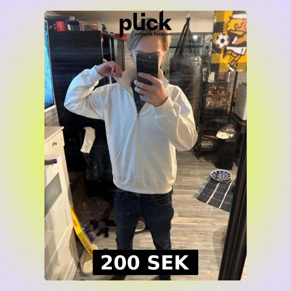 Säljer en riktigt schysst half zip tröja sitter riktigt skönt o är perfekt för dig som vill ha lite mer laidback look. Jag är 170 och den passar perfekt på mig