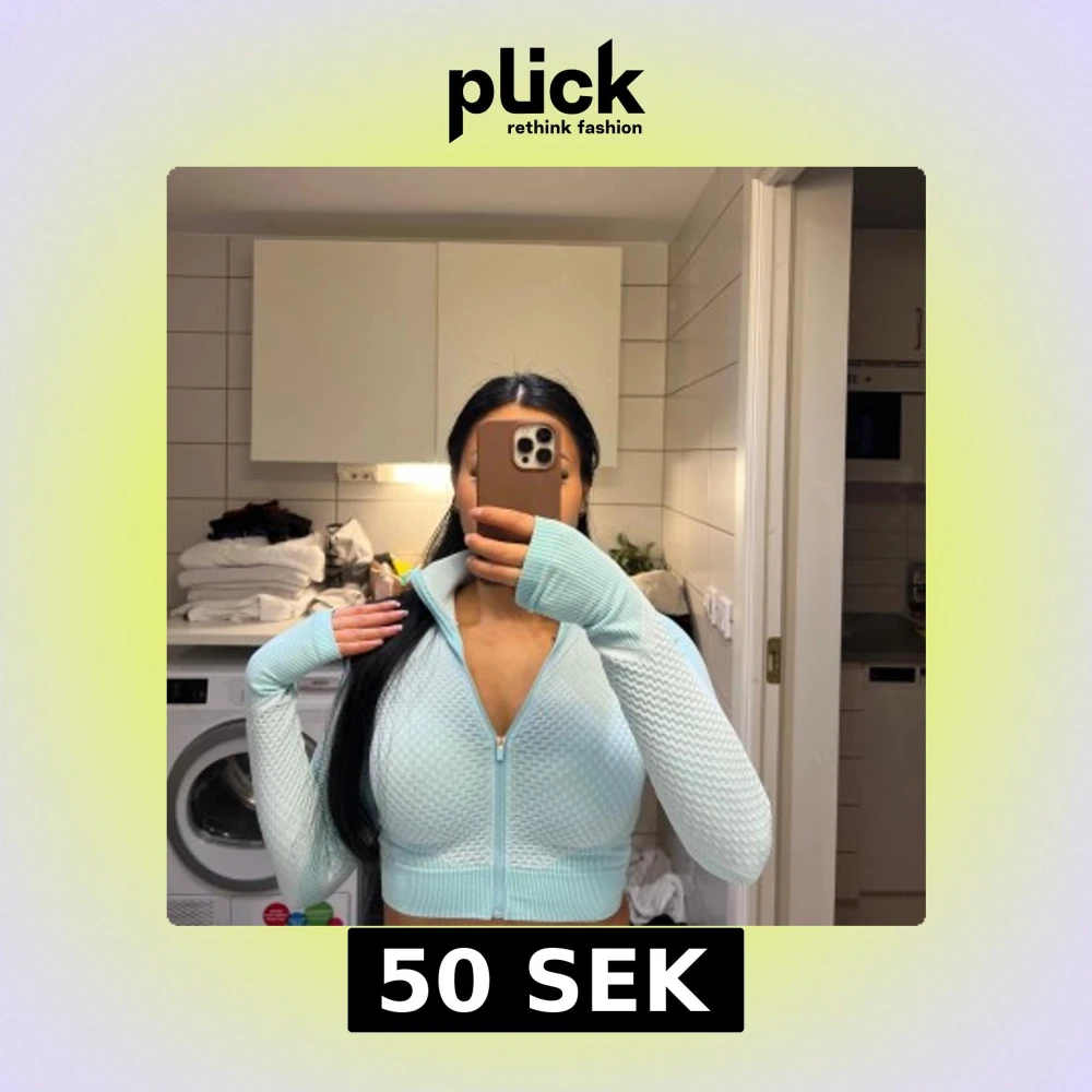 Snygg ljusblå croppad hoodie med dragkedja framtill. Tröjan har en texturerad yta och långa ärmar med tumhål, perfekt för en sportig look. Den är både bekväm och stilren, idealisk för träning eller en avslappnad dag.