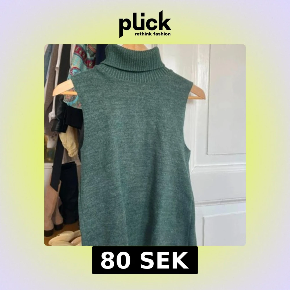 Säljer en stickad grön ärmlös polotopp från Zara. Perfekt att styla med skjorta under eller som den är. Mjuk och skön med hög polokrage. Passar dig som gillar en enkel men trendig look.
