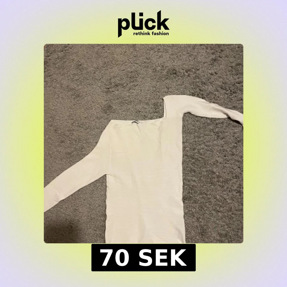 Säljer en stilren vit ribbad tröja från Zara. Tröjan har en offshoulder-design och långa ärmar