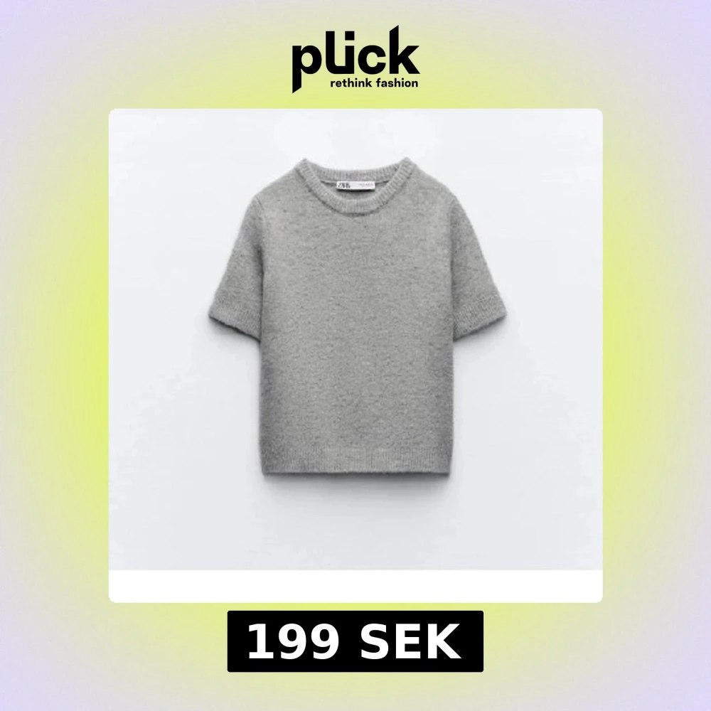 Supermjuk grå stickad tröja från Zara med korta ärmar och rund halsringning. Perfekt för lager-på-lager och funkar lika bra till jeans som kjol. Enkel och stilren design som passar till allt.