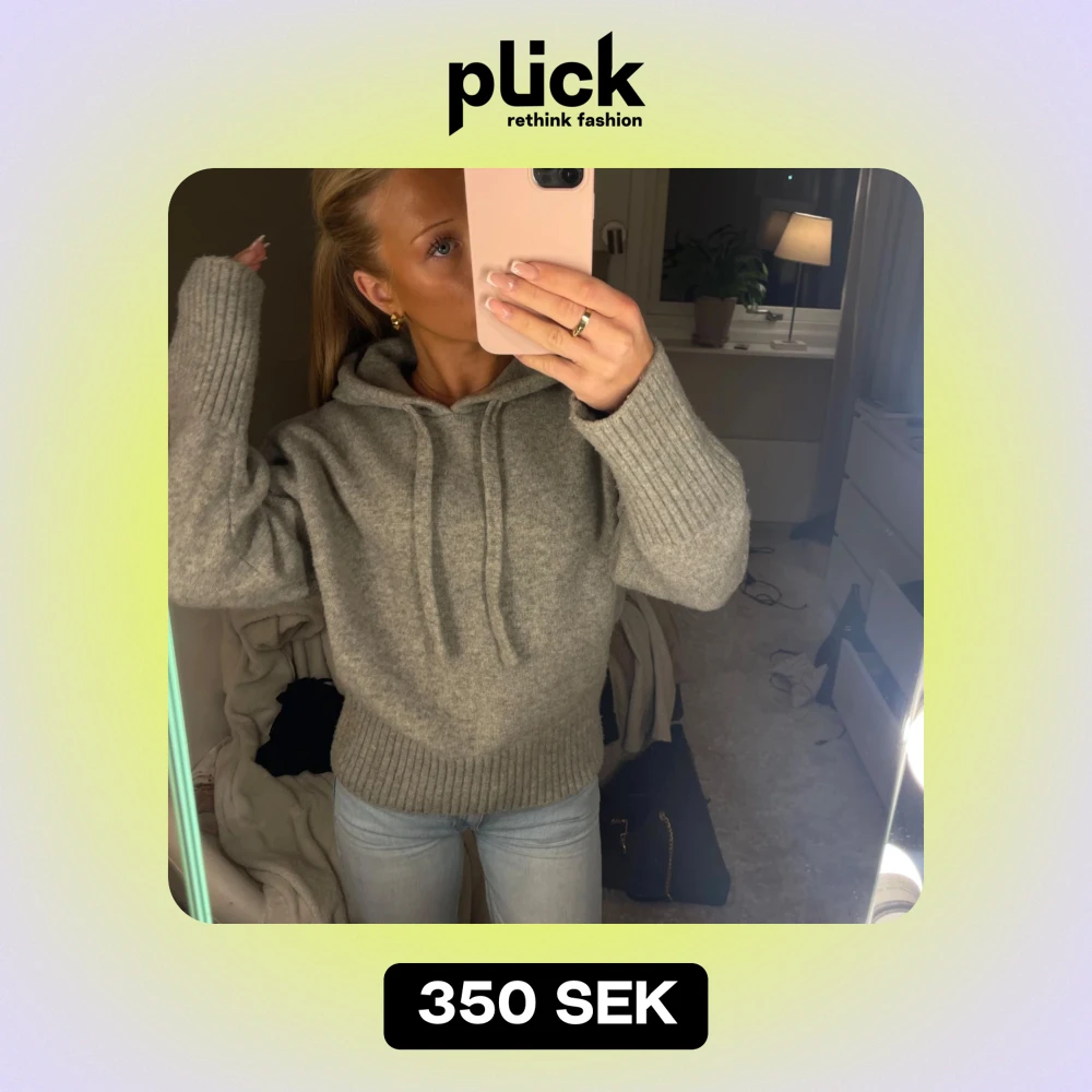 Mysig grå stickad hoodie i mycket bra skick. Perfekt för kyliga dagar med sin varma och bekväma passform. Den har en klassisk huva, slutsåld modell från Zara!