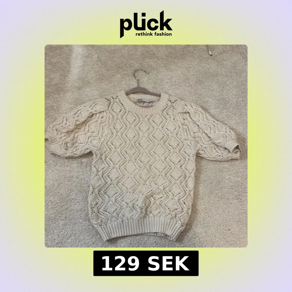 Supersöt vit stickad tröja från Zara med korta puffärmar och snyggt hålmönster. Tröjan har rund hals och ribbade muddar vid ärmslut och nederkant. Perfekt för dig som gillar en chill och trendig look med lite extra detaljer.