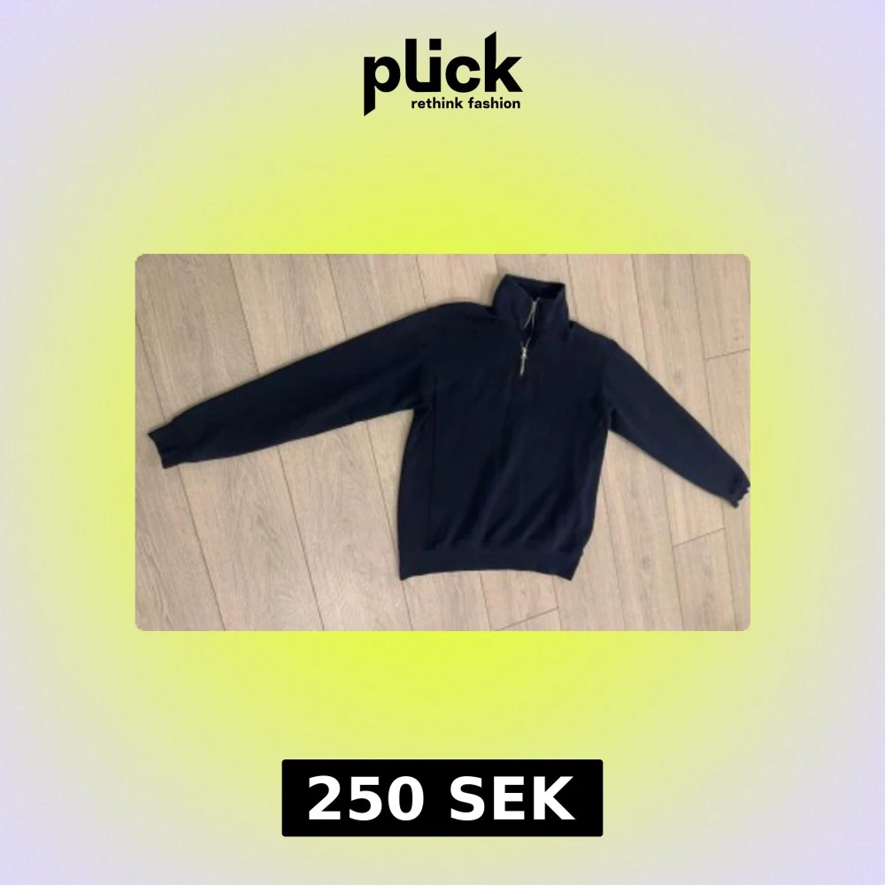 Snygg mörkblå tröja med half zip och hög krage. Tröjan har långa ärmar och ribbade muddar vid ärmslut och nederkant. Perfekt för dig som gillar enkel och stilren design. Passar till både jeans och mjukisbyxor.