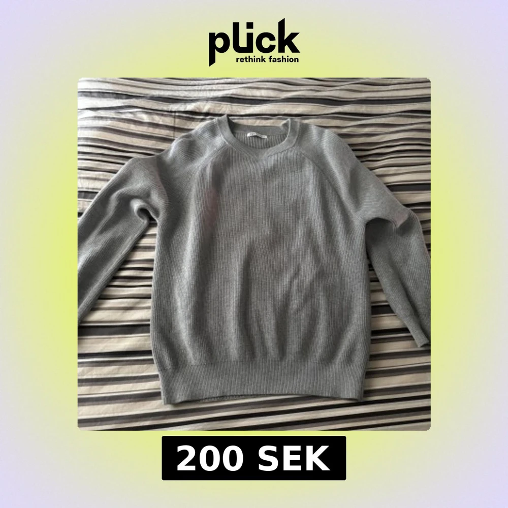 Säljer en stilren grå stickad tröja från Zara. Perfekt för lager-på-lager och enkel att matcha med olika outfits. Liten i storlek passar bäst för dig som har S.