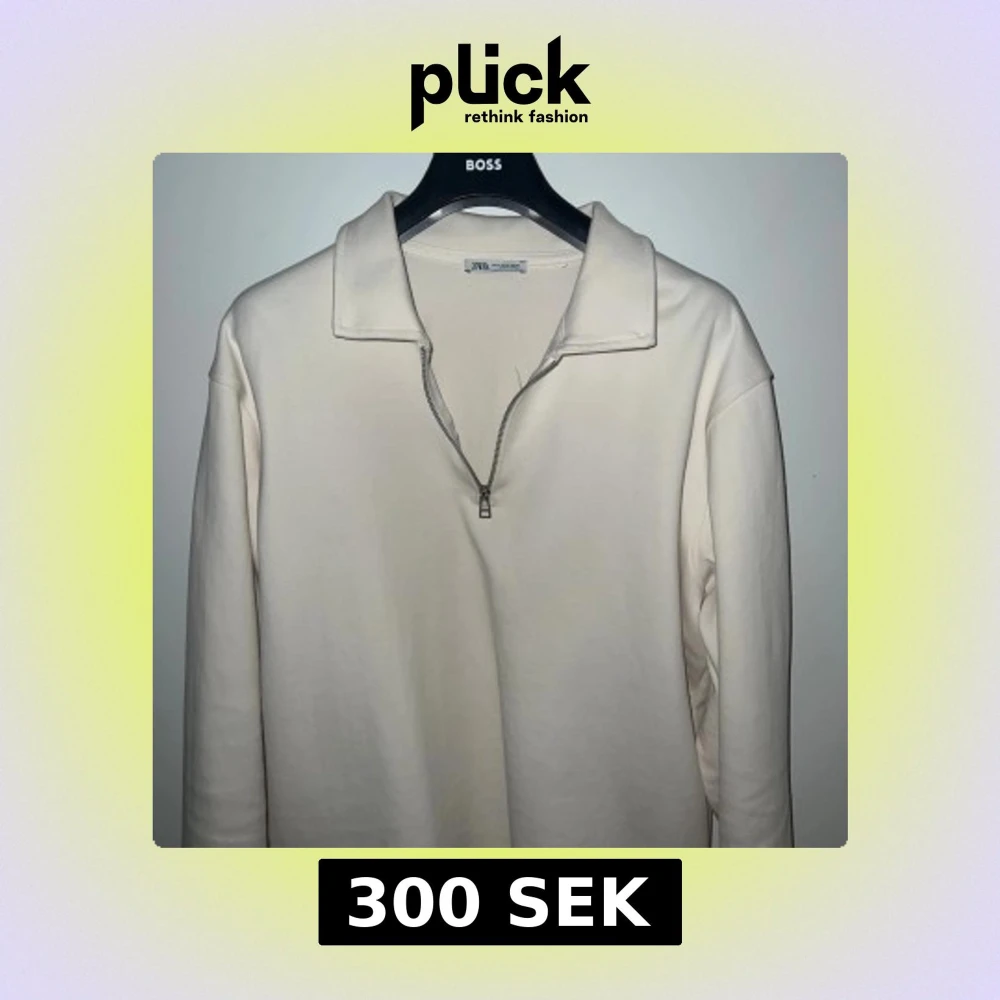 Vit långärmad tröja från Zara med krage och halv dragkedja framtill. Tröjan har en clean och stilren look, tillverkad i mjuk bomull. Perfekt för dig som gillar minimalistisk stil och vill ha något enkelt men snyggt.