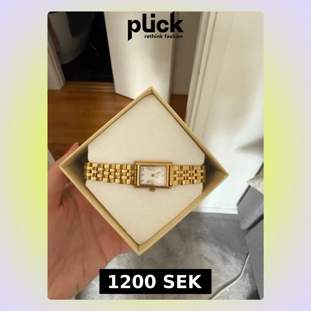 Stilren guldfärgad klocka från Mockberg med rektangulär urtavla och länkarmband i metall. Urtavlan är vit med guldiga detaljer och romerska siffror. Extra länkar medföljer så du kan justera storleken. Perfekt accessoar för en elegant look. Lite defekter på färgen som man kan se på de två sista bilderna men inget som märks av!