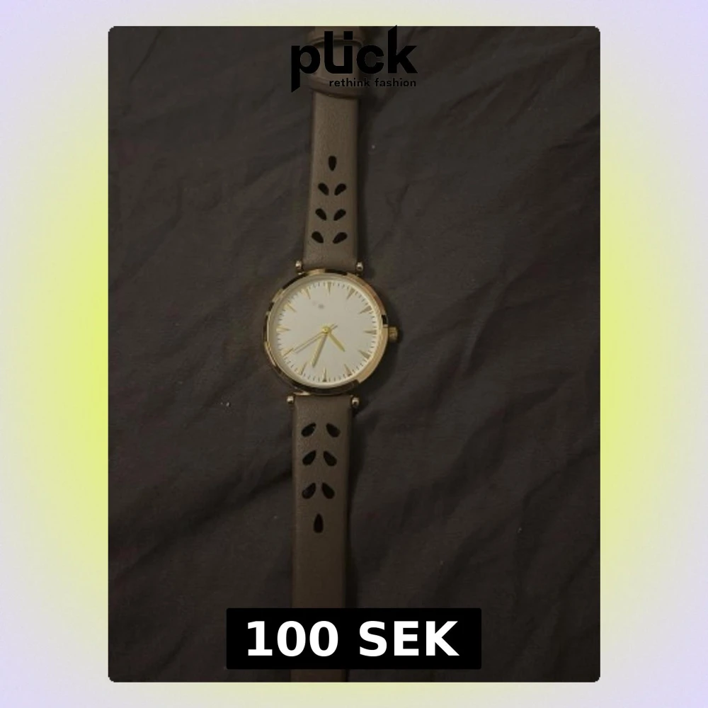 Snygg klocka med vitt ur och guldfärgad boett. Brunt läderband med dekorativa utskärningar ger en unik look. Minimalistisk design utan siffror på urtavlan, perfekt för dig som gillar stilrena accessoarer.