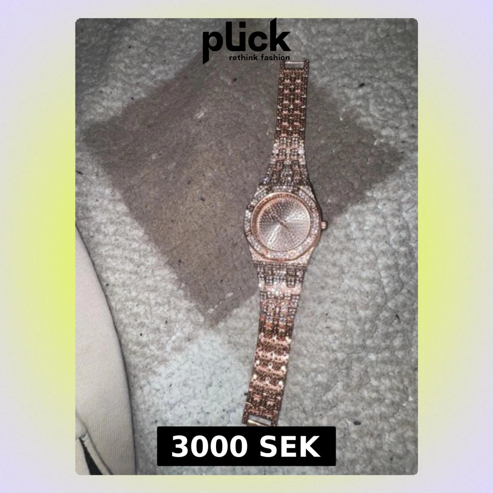 Snygg klocka i roséguld med glittrande stenar på både urtavla och armband. Klockan har ett metallarmband med länkdesign och rund urtavla utan siffror. Perfekt accessoar för dig som gillar bling och vill sticka ut.
