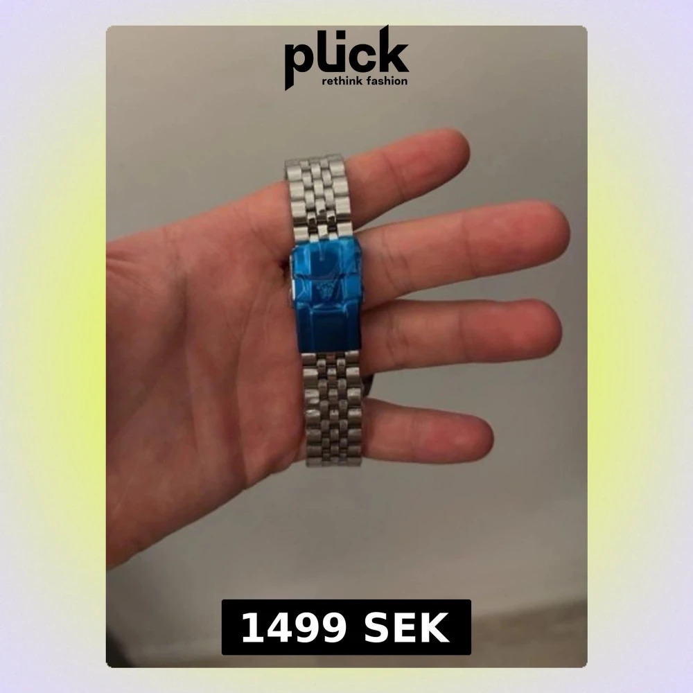 Stilren klocka från R med länkarmband i rostfritt stål och klassisk silverfärg. Spännet har en blå skyddsfilm och märkets logga syns tydligt. Perfekt accessoar för dig som gillar en clean och modern look samt pris går att diskutera tveka ej angående frågor osv! Den är fortfarande plastat och är i nyskick.