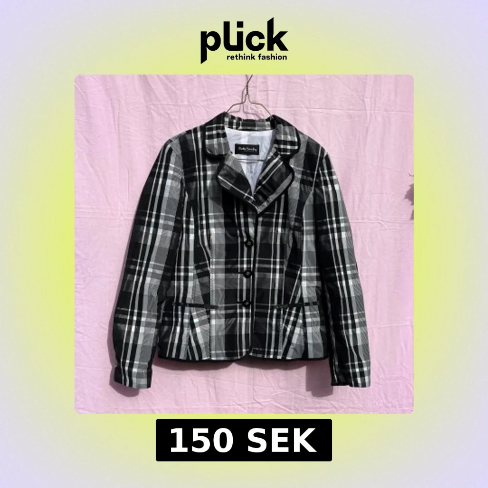 Snygg kavaj från Betty Barclay i svartvitt rutigt mönster. Klassisk krage, knäppning framtill med tre knappar och figursydd passform. Perfekt för dig som vill sticka ut med en stilren och trendig look.