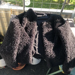 En svart lurvig jacka i storlek S. Den är använd några gånger men funkar precis som ny. Den är inte lurvig på insidan och för att knäppa den så är det annorlunda knappar men lätta att förstå.