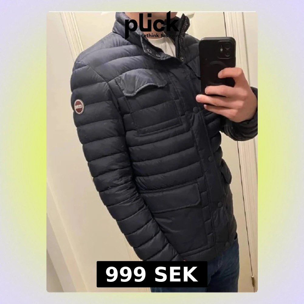 Snygg svart dunjacka från Colmar med hög krage och flera praktiska fickor framtill. Jackan har ett quiltat mönster och klassisk pufferstil, perfekt för kyliga dagar. Märkeslogga på ärmen och stängs med både dragkedja och knappar.