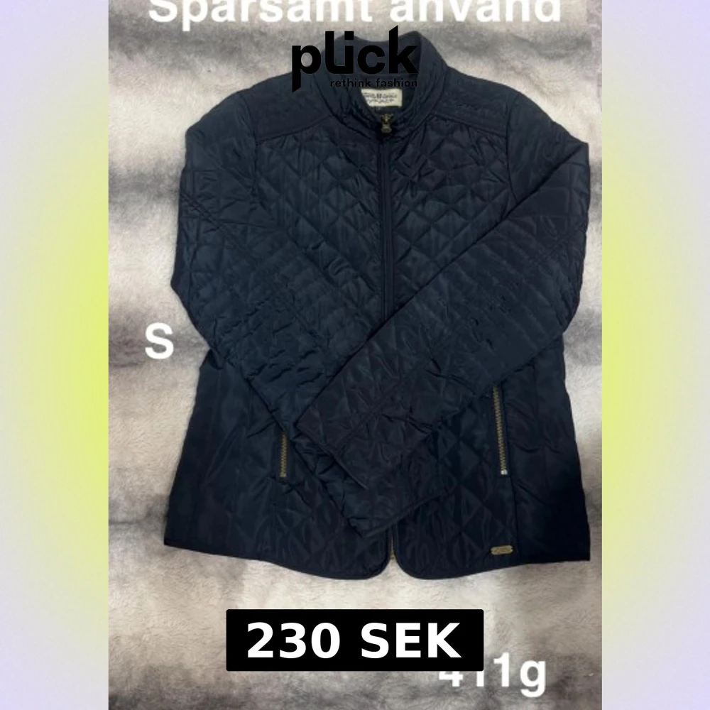 Quiltad mörkblå jacka från Hampton republic med dragkedja framtill och två fickor med guldfärgade dragkedjor. Jackan har ståkrage och snyggt mönstrad yta. Perfekt för dig som gillar klassisk stil med modern touch.🌸Sparsamt använd. En lös tråd. Storlek s