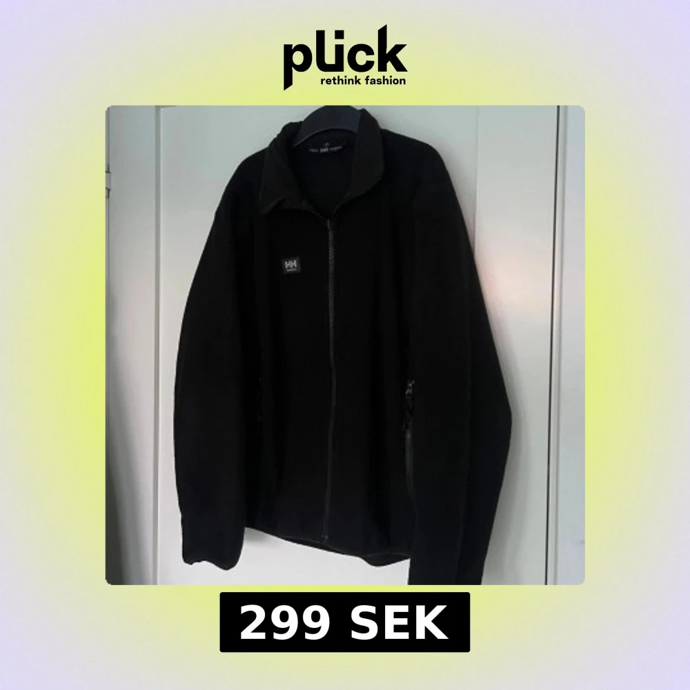 Svart fleecekofta från Helly Hansen med hel dragkedja framtill och hög krage. Tröjan har två sidofickor med dragkedja och HH-logga på bröstet. Perfekt för kyliga dagar och enkel att slänga på över en t-shirt.