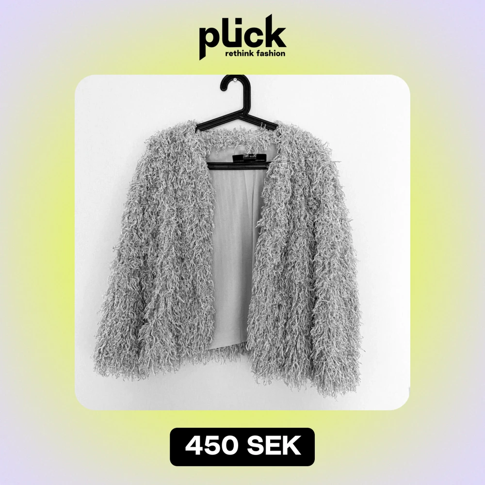 En cropad fluffig jacka i grå färg samt silver. Jag köpte den i Danmark. Den ”fäller” inte och är så himla fin.