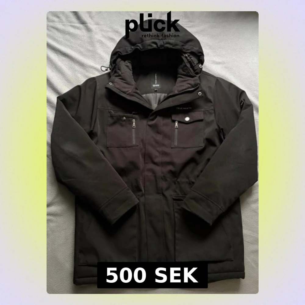 Svart parkajacka från True North med huva och flera praktiska fickor framtill. Jackan har dragkedja och tryckknappar, samt justerbar huva. Tillverkad i slitstarkt syntetmaterial och fodrad för extra värme. Perfekt för kalla dagar och nordiskt väder.