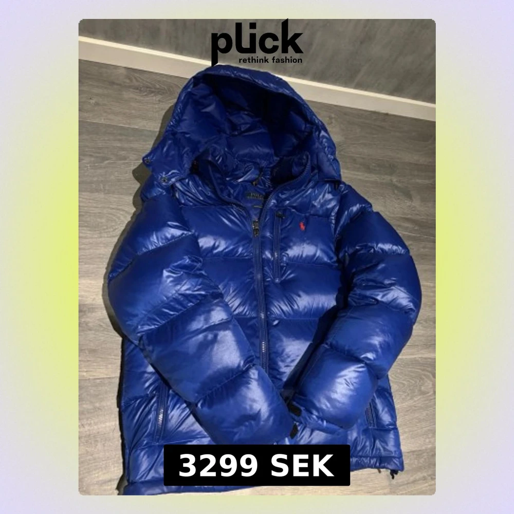 Snygg blå dunjacka från Polo Ralph Lauren med huva och dragkedja framtill. Jackan har det klassiska röda Polo-logot på bröstet och två sidofickor med dragkedja. Perfekt för kalla dagar och riktigt skön att bära.