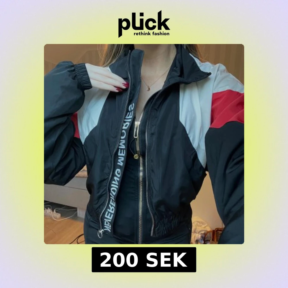 Säljer en snygg vindjacka från Pull&Bear i svart, vitt och rött. Jackan har dragkedja med ringdetalj, elastisk midja och ärmar samt coola färgblock på axlarna. Oversized passform och sportig vibe, perfekt till streetwear.